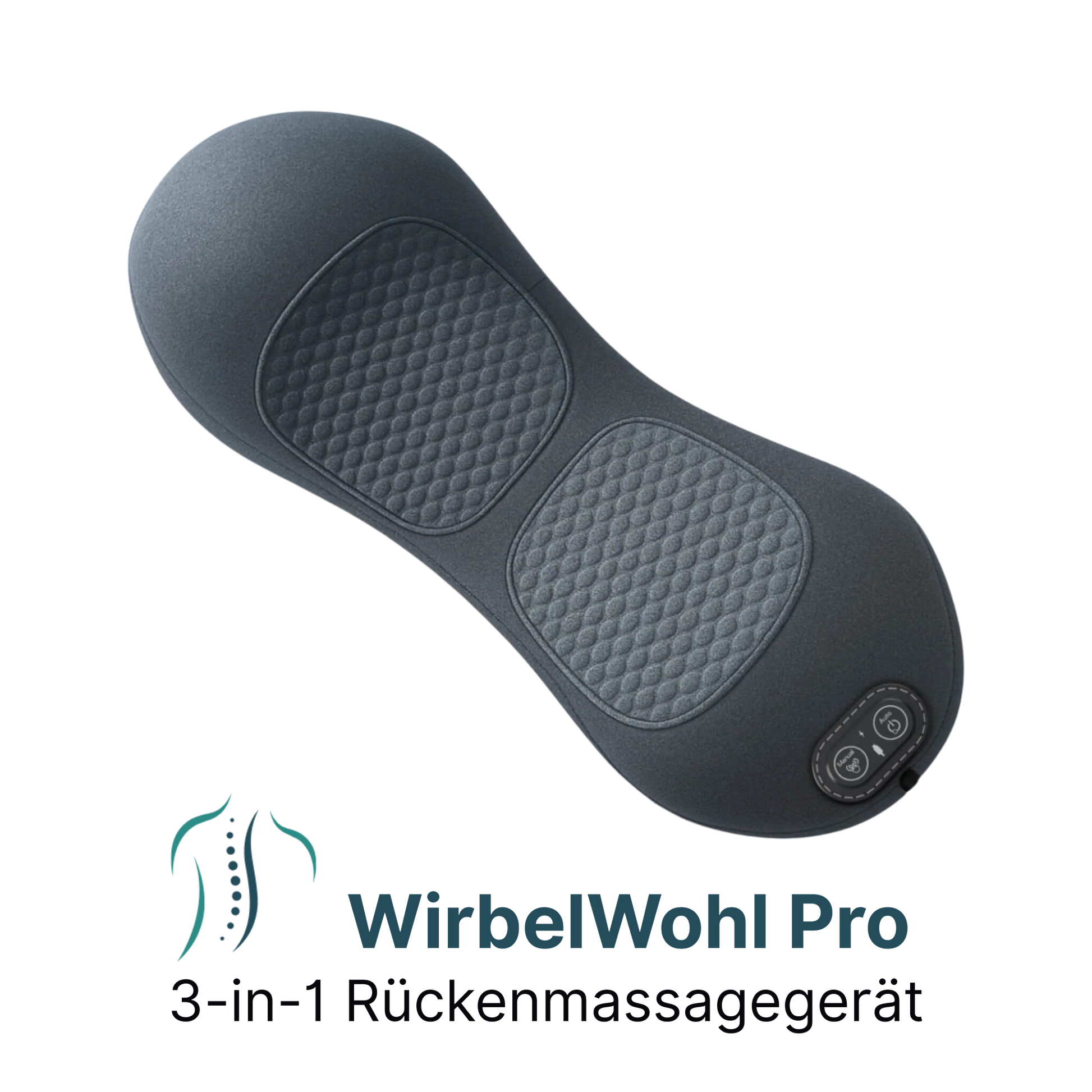 Der WirbelSanft™ – WirbelWohl Pro nutzt die Kraft von drei gezielten Entspannungstechniken, um verspannte Bereiche entlang der Wirbelsäule sanft zu lockern und den Rücken fühlbar zu entlasten.
